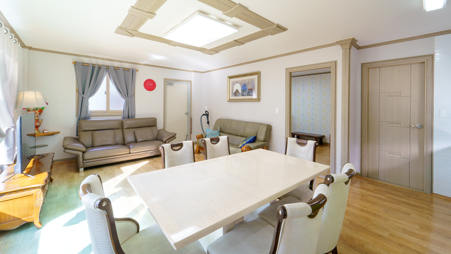 - 집기품목 : TV, 에어컨, 냉장고, 가스레인지, 취사시설/도구, 전기밥솥, 샴푸, 린스, 바디워시, 드라이기, 화장대, 와이파이, 금연, 침대방, VOD, 욕실용품, 남녀공용, 단체